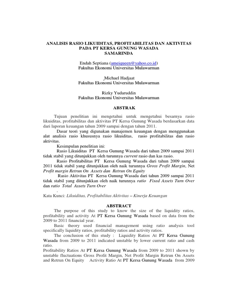 Analisis Rasio Likuiditas Profitabilitas Dan Aktivitas Pada
