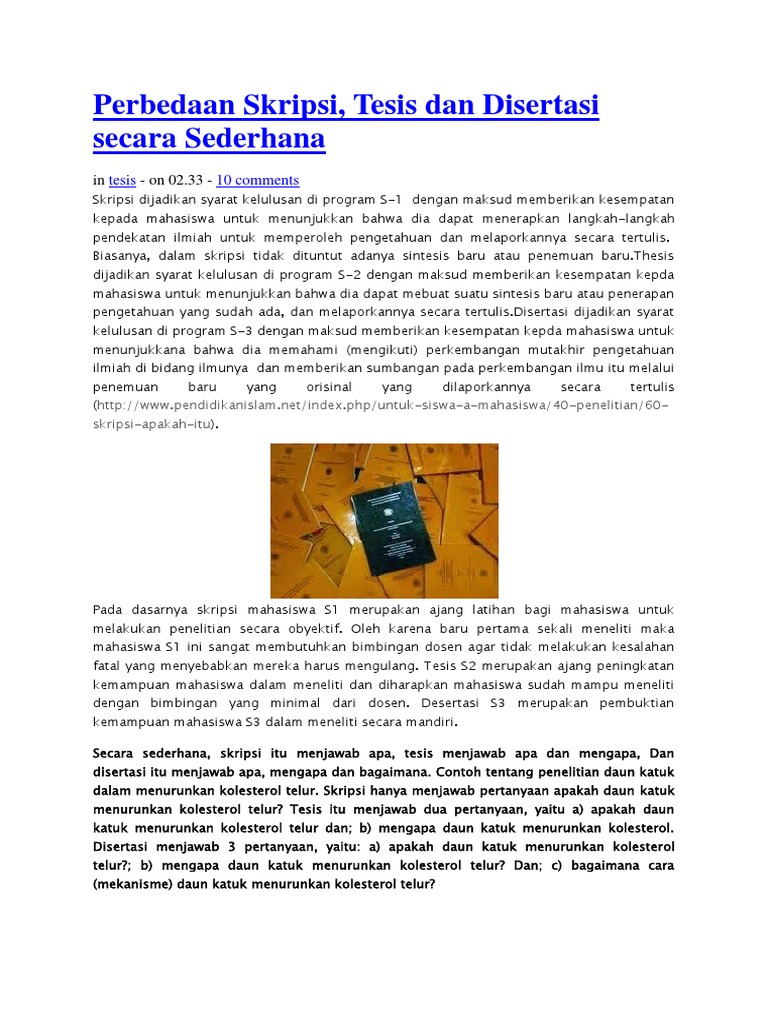 Inilah rekomendasi tentang Perbedaan Skripsi Tesis Dan Disertasi Adalah.