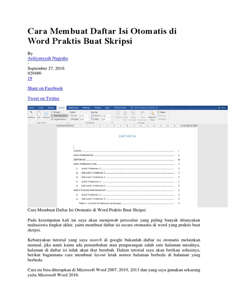 Cara Membuat Daftar Isi Otomatis Di Word Praktis Buat Skripsi