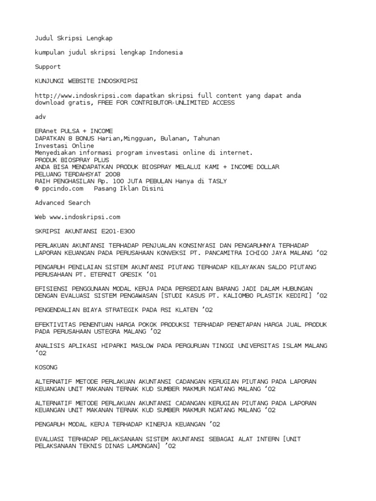 Pdf Judul Skripsi Lengkap Berbagai Jurusan Downlad Pdf