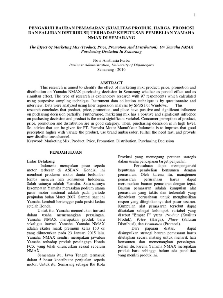 Godong ijo asri nursery terhadap keputusan pembelian konsumen tanaman hias. Berdasarkan pada konsep pemikiran diatas maka peneliti tertarik untuk menganalisis dan meneliti lebih lanjut mengenai pengaruh bauran pemasaran terhadap keputusan pembelian konsumen dengan mengambil judul. Analisis pengaruh bauran pemasaran terhadap keputusan pembelian mie instan merek mie sedaapstudi pada mahasiswa kampus iii universitas muhammadiyah malang analisis atribut atribut produk yang dipertimbangkan konsumen dalam pembelian sepeda motor yamaha miostudi pada mahasiswa universitas muhammadiyah malang. Sekian pembahasan tentang pengaruh bauran pemasaran terhadap keputusan pembelian dan semoga pembahasan tentang pengaruh bauran pemasaran terhadap keputusan pembelian ini dapat bermanfaat untuk teman teman. Dapat diasumsikan bahwa penilaian atau tanggapan konsumen terhadap bauran pemasaran akan mempengaruhi keputusan pembelian konsumen. Penelitian ini dilakukan dengan tujuan untuk mengetahui apakah produk harga distribusi dan promosi mempengaruhi secara simultan dan parsial terhadap keputusan pembelian lcd tv di kota balikpapan. Bauran pemasaran produk yang ditanggapi atau direspon dengan baik positif oleh konsumen akan memiliki peluang yang besar bagi produk tersebut untuk dibeli. Yang terdiri dari berbagai elemen yang perlu dipertimbangkan agar implementasi strategi pemasaran yang ditetapkan dapat berjalan sukses lupiyadi 200158.