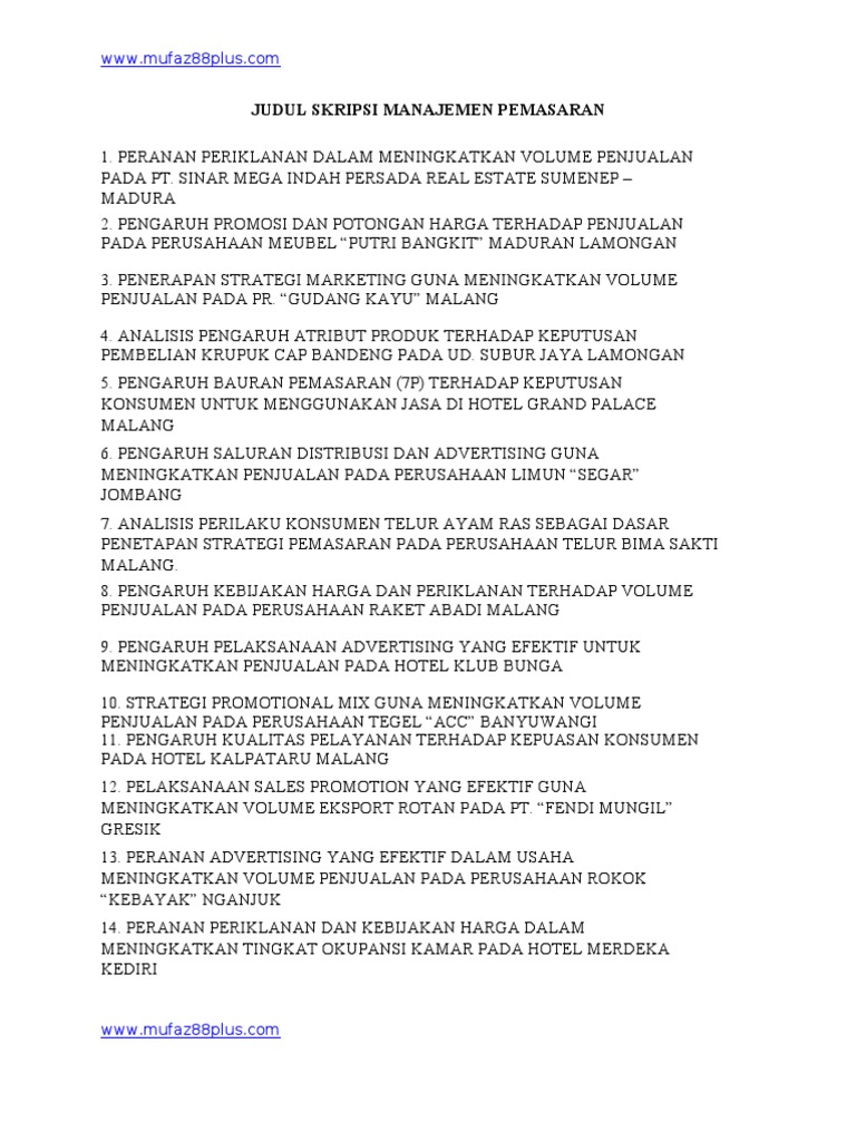 Judul Skripsi Manajemen Pemasaran