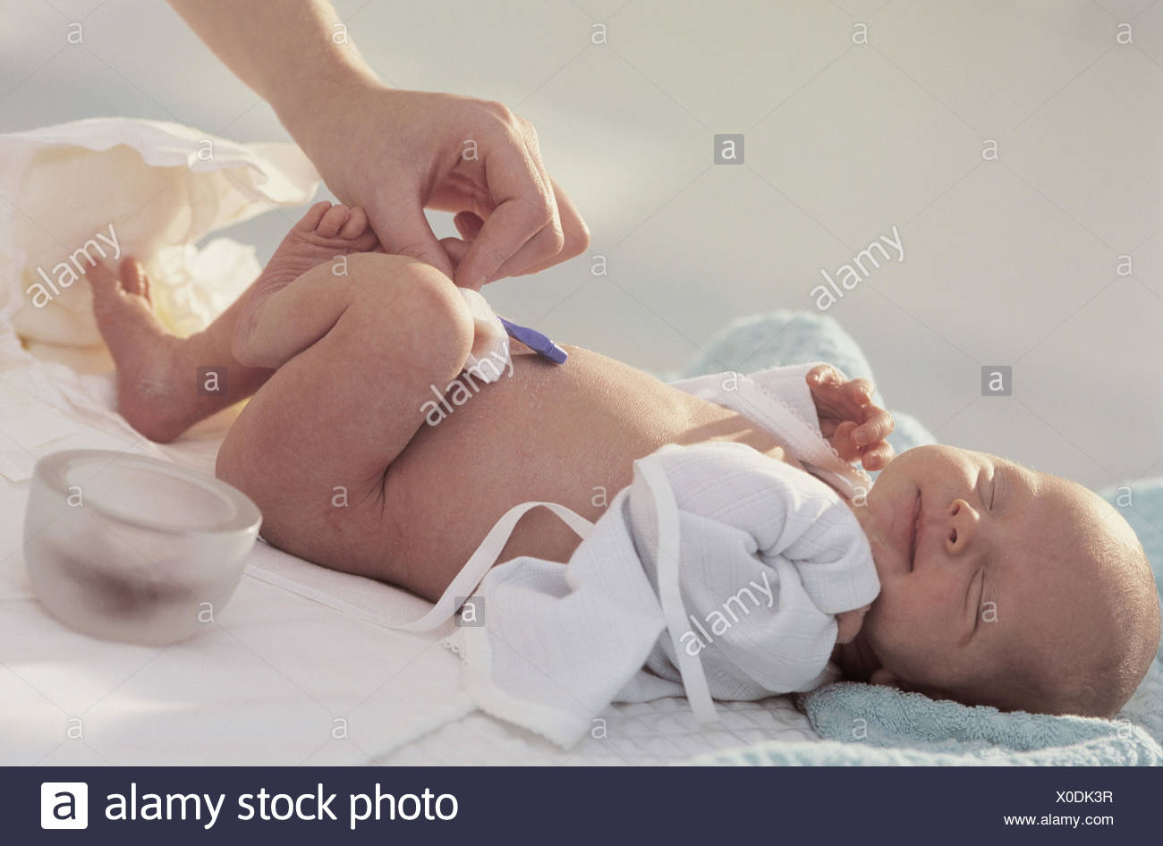 Madre Niño Mentira Mantenga Limpio Ombligo Cuidado Y