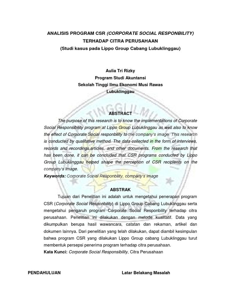 Pengaruh Csr Terhadap Citra Perusahaan Essay Sample